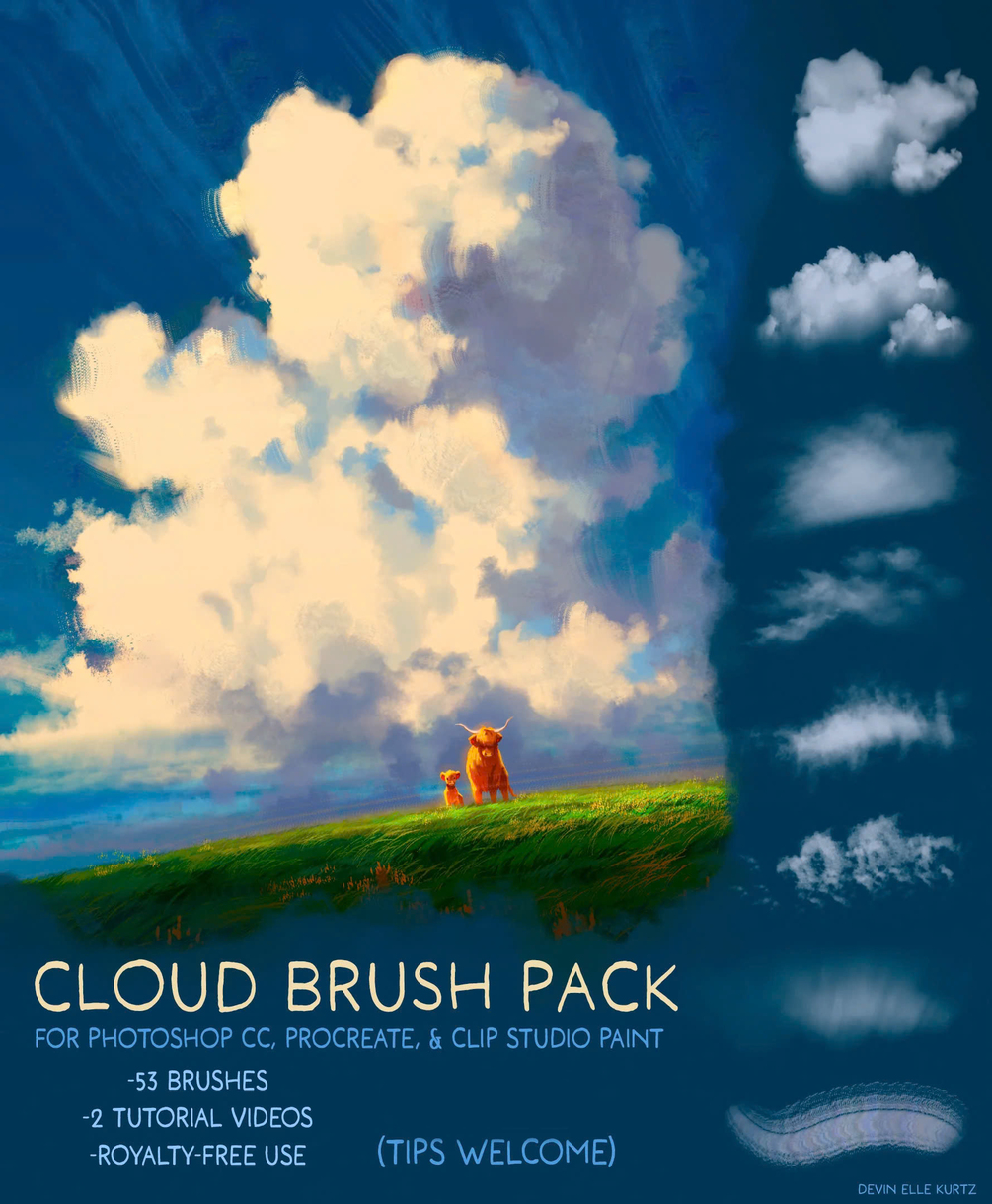 Cloud Brush Pack (Procreate, Clip Studio Paint, Photoshop CC)